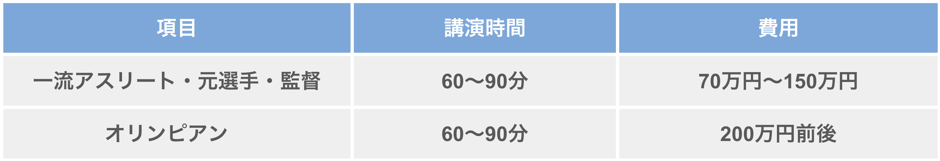 一流アスリート・元選手・監督: 60〜90分 :70万円〜150万円