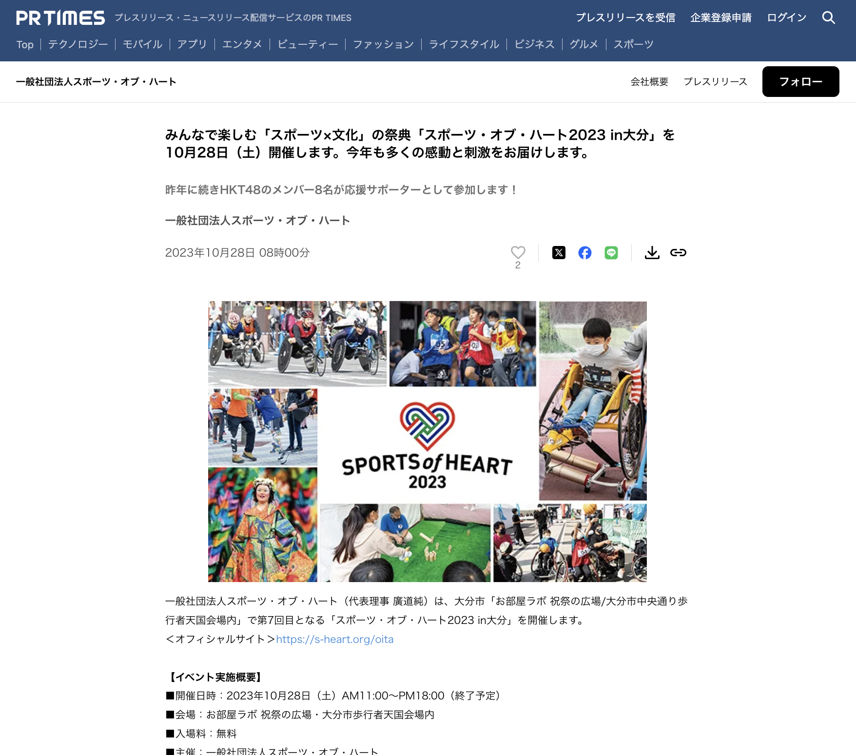 2023年に開催されたスポーツ×文化の祭典「スポーツ・オブ・ハート2023 in大分」は、多くの芸人やタレント、アスリートがゲストとして登壇する賑やかなイベント。特に、大分出身のダイノジさん、Wエンジンのえとう窓口さんがMCに就任し、イベントを盛り上げました。