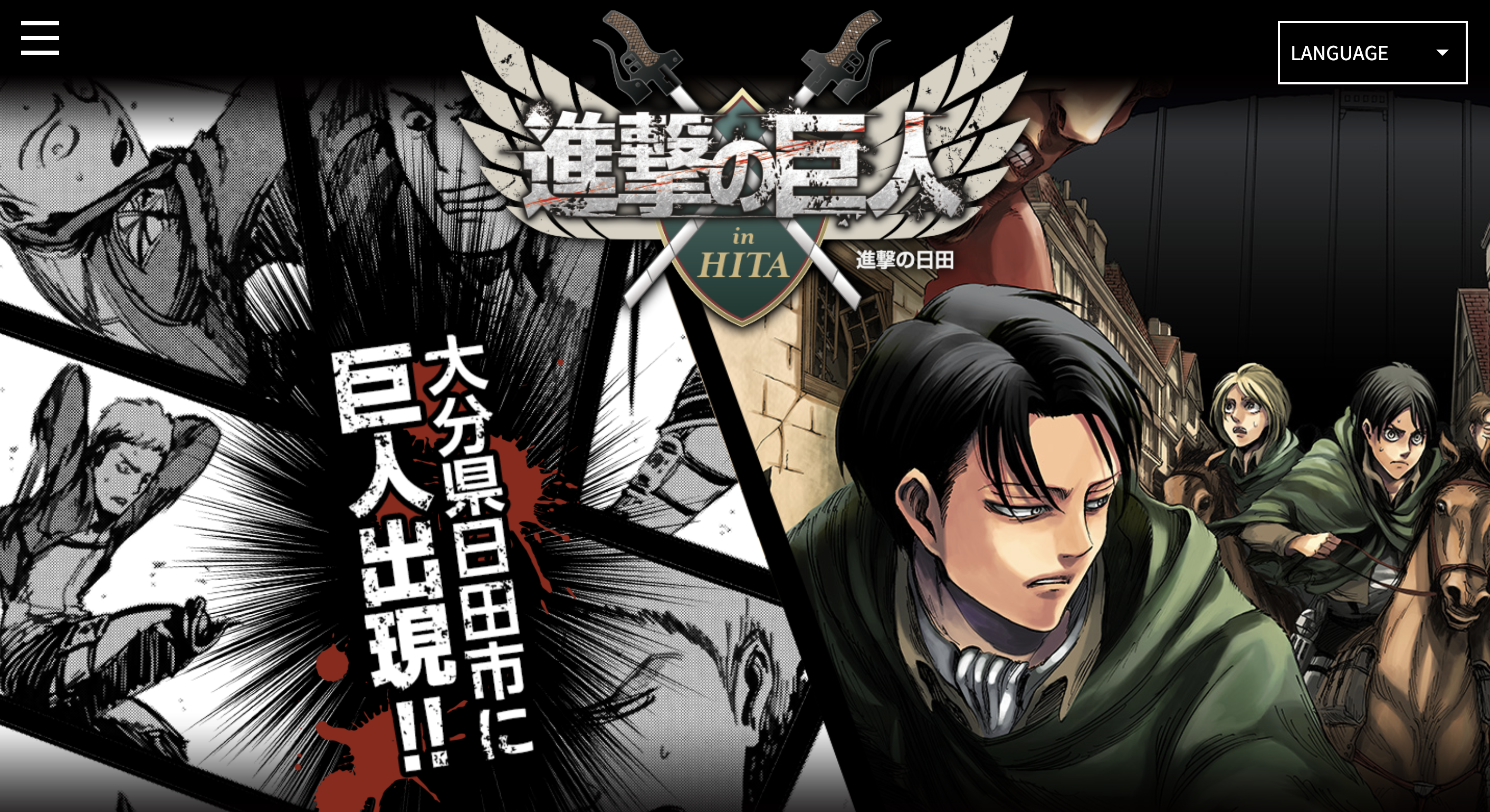 現在日田市では、「進撃の巨人 in HITA ~進撃の日田~」プロジェクトが展開されています。JR日田駅前にはキャラクターの銅像が設置されたり、近隣飲食店でのコラボ展開、記念イベントやトークイベントの開催など、幅広い施策が行われています。作品を通じてファンが多く訪れ、街が賑わっているようです。