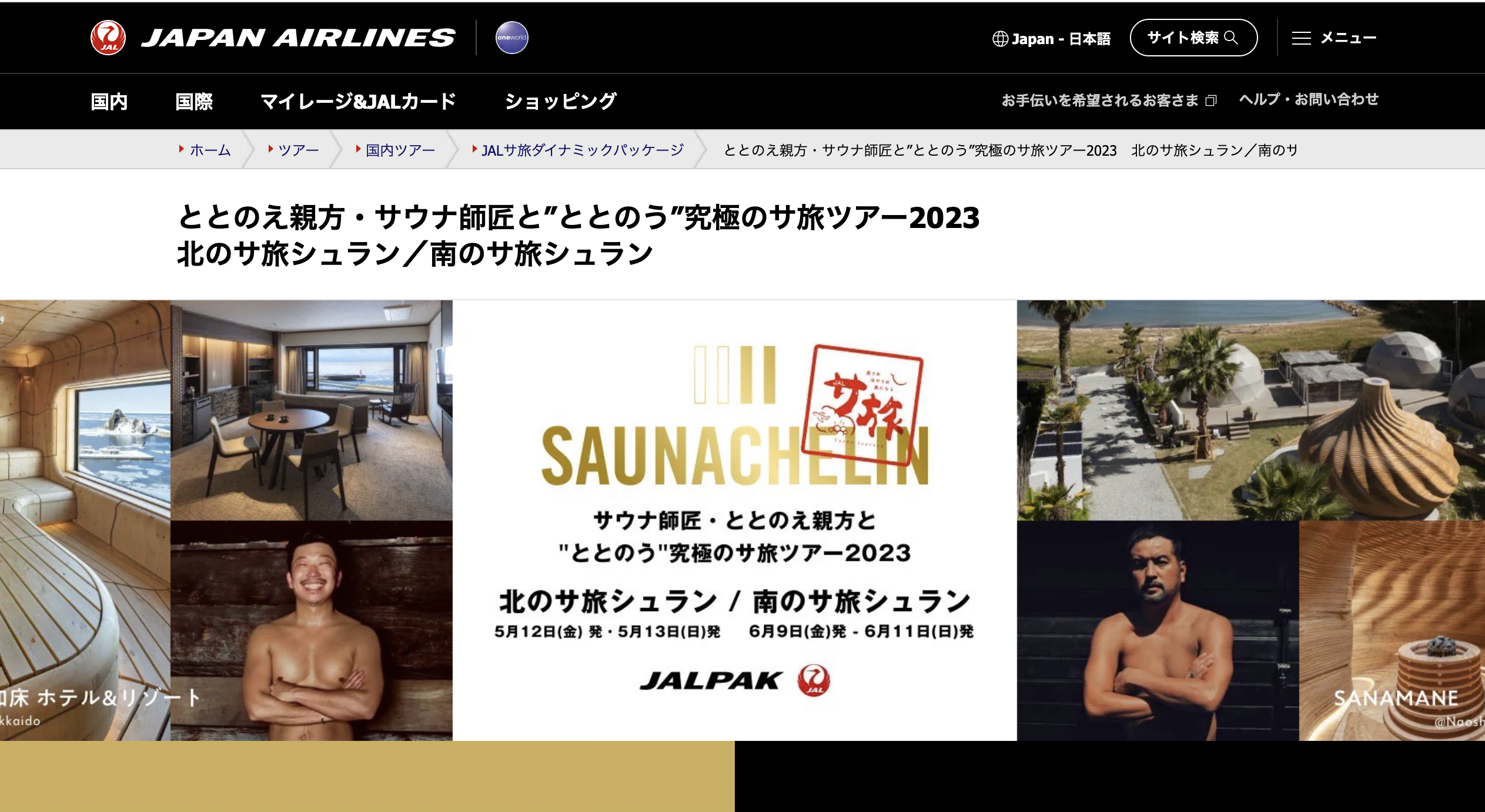 航空会社・JALとプロサウナーのととのえ親方さんがコラボした旅行企画で、「北のサ旅シュラン」という名前で北海道のサウナを存分に楽しめるプランを提供。ツアーの中では、サウナアイテムとして知られるヴィヒタのワークショップやととのえ親方さんのトークショーなど、サウナ好きにはたまらないプランが満載で、大好評の中で企画は終了したそうです。