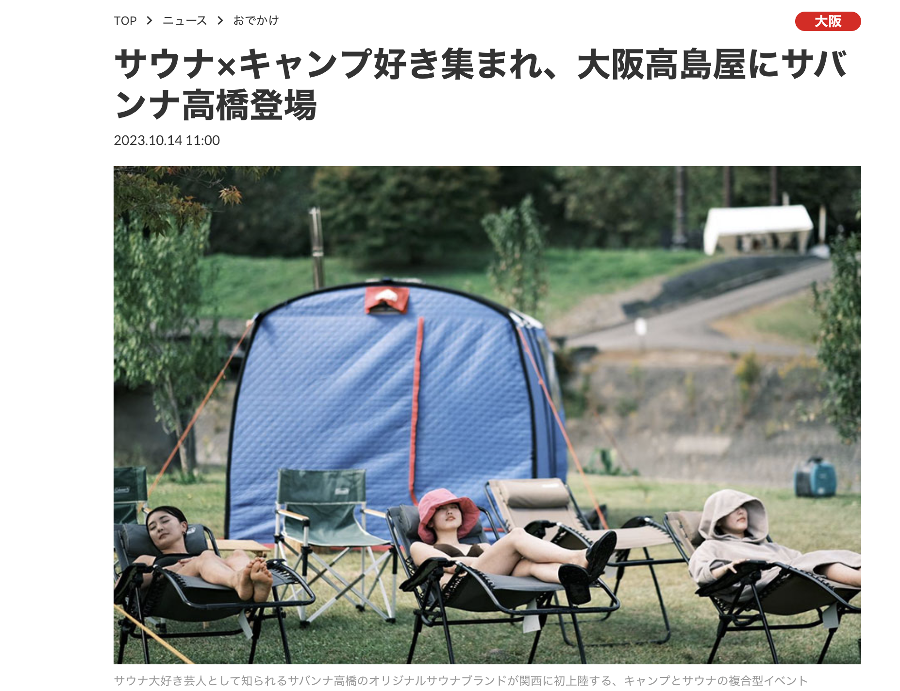 お笑い芸人のサバンナ高橋さんが老舗百貨店の「高島屋大阪店」のサウナイベントに起用された事例です。キャンプとサウナを掛け合わせたイベントで、サバンナ高橋さんによるトークショーのほか、高橋さん本人が立ち上げたオリジナルサナウナブランド・SSSが関西に初登場し、イベントを大いに盛り上げました。