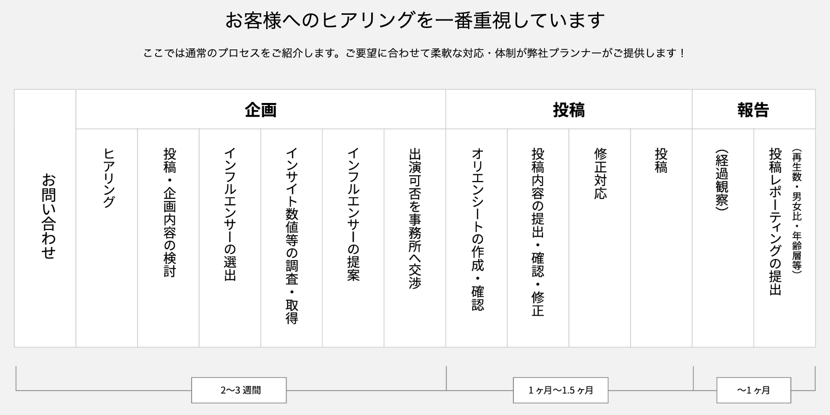 サウナというジャンルを取り扱ってのタレント起用の場合、広告やイベントだけでなく、施設とのタイアップや自治体からの企画などの案件が発生することも多いかと思います。こういった場合も、私たちのように経験豊富なキャスティング会社にお任せいただければ、皆さまの不安・疑問点をすぐさま解消し、丁寧なヒアリングを行って企画サポートを進めていきますので、安心です。
